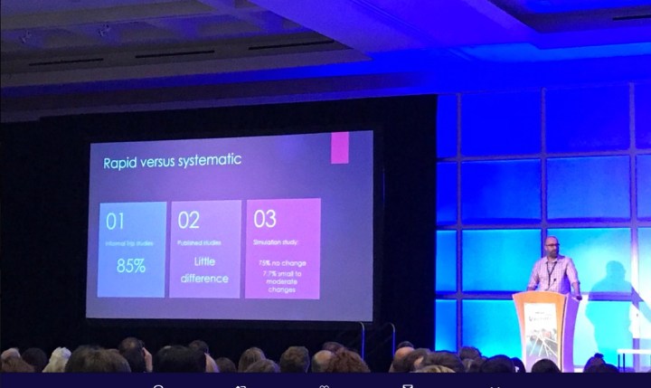 I talked about, you guessed it, rapid reviews. My emphasis was on the fact that, whatever the review type, you never get close to 100% of the available data and therefore you resort to sampling the data.